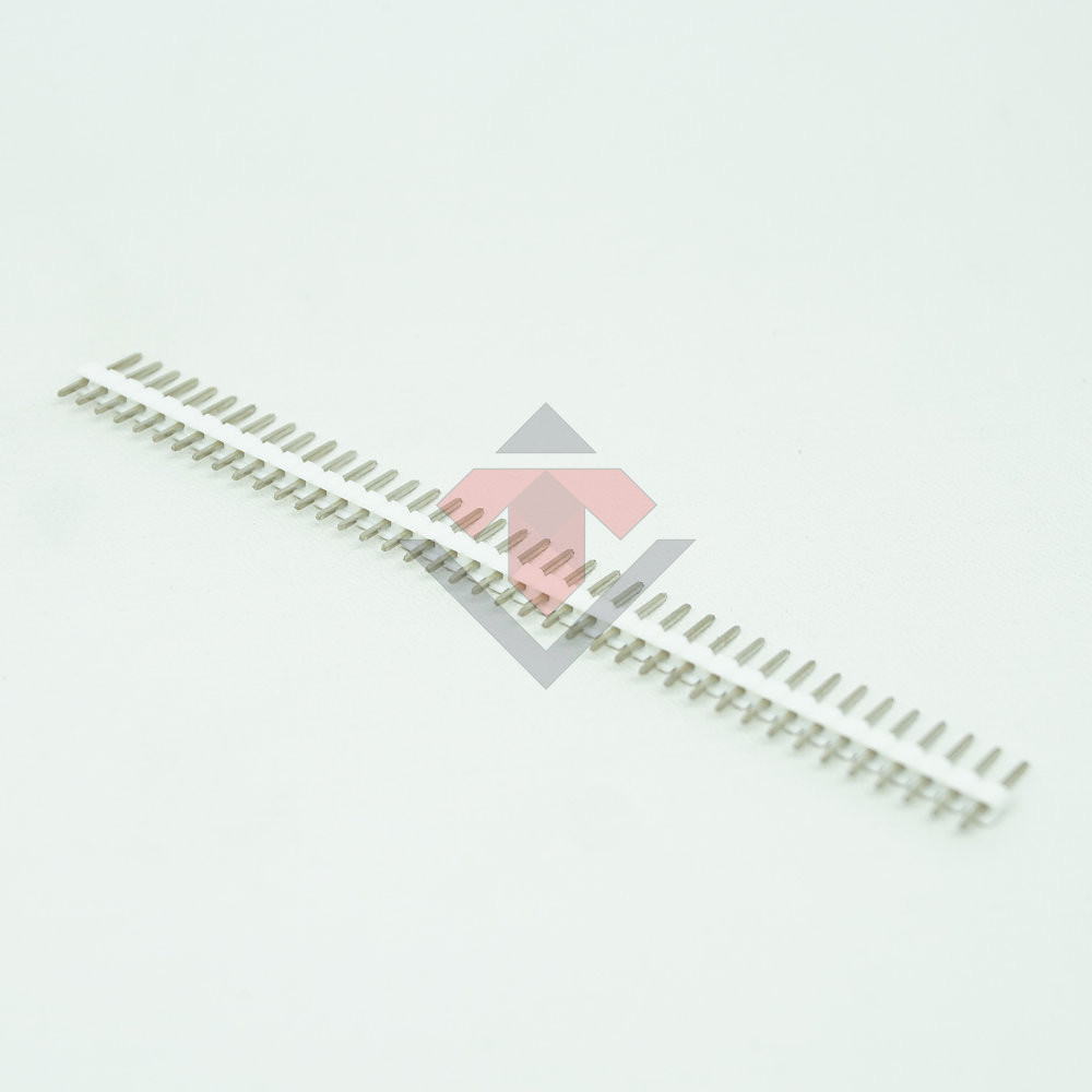 These 0.1″/2.54mm-pitch header strips are commonly used as low-cost connectors. The standard spacing allows use with solderless breadboards, perforated prototyping PCBs, female headers, and our premium and pre-crimped jumper wires. The single-row header strips can easily be snapped into smaller strips to fit your application. The double- and triple-row strips can also be broken into smaller strips, but it takes a little more effort, and it is sometimes easier to use wire/diagonal cutters.